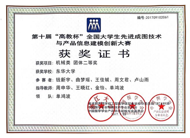 经过前期的集中培训和刻苦训练,最终MG冰球官网学生取得了机械类团体二等奖1项、个人全能一等奖1项、个人全能二等奖3项,个人机械类建模一等奖1项,个人机械类建模二等奖2项,个人机械类尺规一等奖1项和个人机械类尺规二等奖1项,周申华、王晓红、金怡、单鸿波等4位老师获优秀指导教师奖。