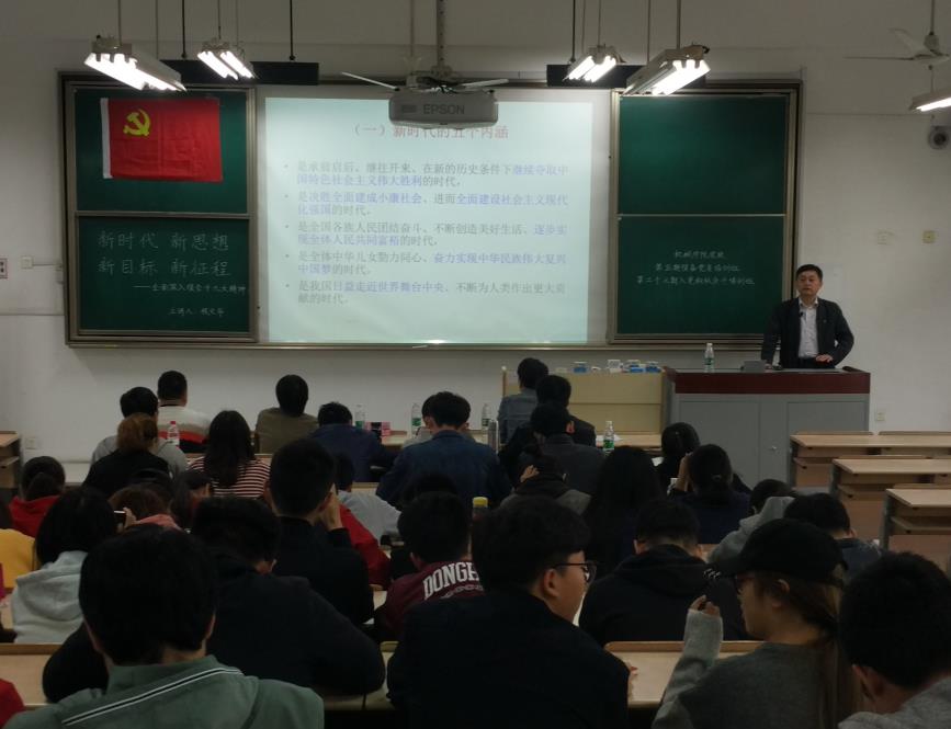 MG冰球突破官网网站党委把学习贯彻党的十九大精神作为学生党员和入党积极分子教育培训的重要内容,11月7日,MG冰球突破官网网站邀请了MG冰球突破官网网站学习宣传贯彻党的十九大精神讲师团成员、马克思主义学院副院长钱文华做“新时代、新思想、新目标、新征程——全面深入领会十九大精神”的专题报告,MG冰球突破官网网站党员教师代表、学生党员、入党积极分子聆听了报告。