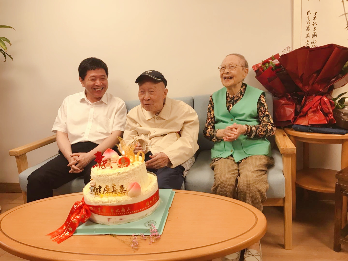 6月28日上午,校长俞建勇一行来到向阳院长者公寓,为退休教授陈人哲先生庆祝百岁生日。校办主任周婉婉、MG冰球突破官网网站党委书记张千里、退管办主任宋敏、党委统战部副部长叶晓燕、九三学社委员会副主委宋晖等教师代表一同参加。
