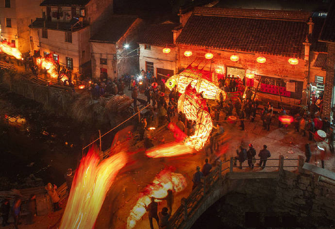 安徽歙县汪满田村的民俗活动“鱼灯会”(张建平拍摄)
