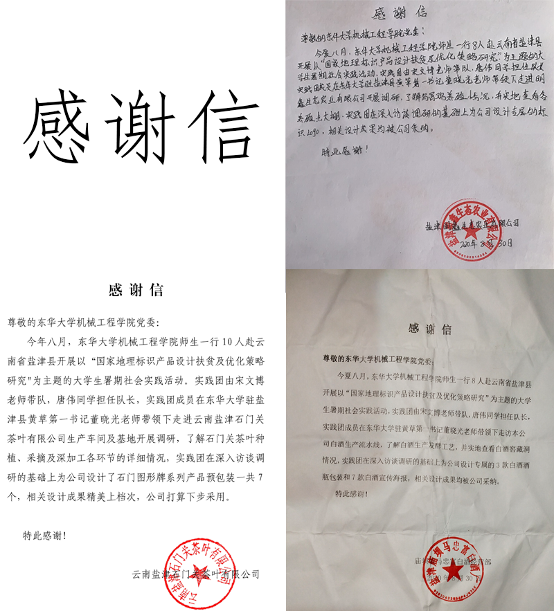 三年来,实践团先后为盐津县农产品竹笋、寰碧山泉、辣椒、天麻、猕猴桃、太平橙、茶叶、乌骨鸡、蜂蜜、天麻、状元米、白酒等近30个特色产品设计了各类包装245款,其中太平橙、茶叶等多款设计包装被当地公司所采纳,并应用于农产品销售,实践团收到多封企业感谢信,也受到当地媒体专门报道。因为盐津,实践成员们聚集到了一起,共同努力共同奋斗,收获了珍贵的友谊。实践团将持续推进此次实践项目成果的优化,利用专业优势为盐津县经济发展提供最大的支持,为MG冰球突破官网网站对口扶贫贡献自己的一份力量。