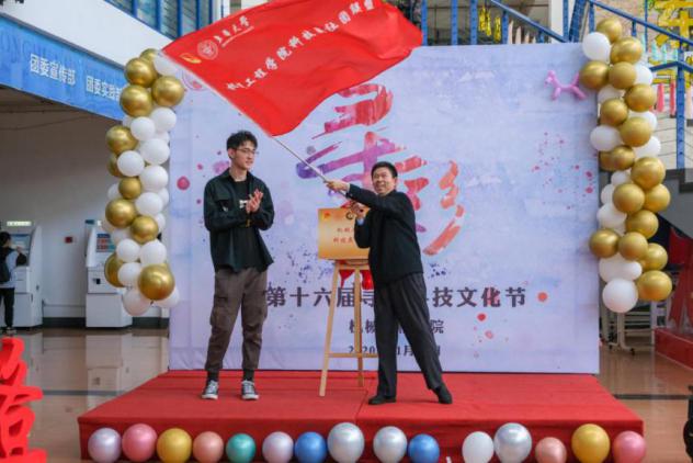 开幕式上通过震撼的视频回顾了历届科技文化节精彩瞬间,随后教务处副处长陆嵘致开幕词,表达了对“寻彩”科技文化节的祝贺与期望。伴随着热烈的掌声和欢呼声,MG冰球突破官网网站院长单鸿波为MG冰球突破官网网站科技类社团联盟揭牌并授旗,同时隆重宣布MG冰球突破官网网站第十六届“寻彩”科技文化节开幕。