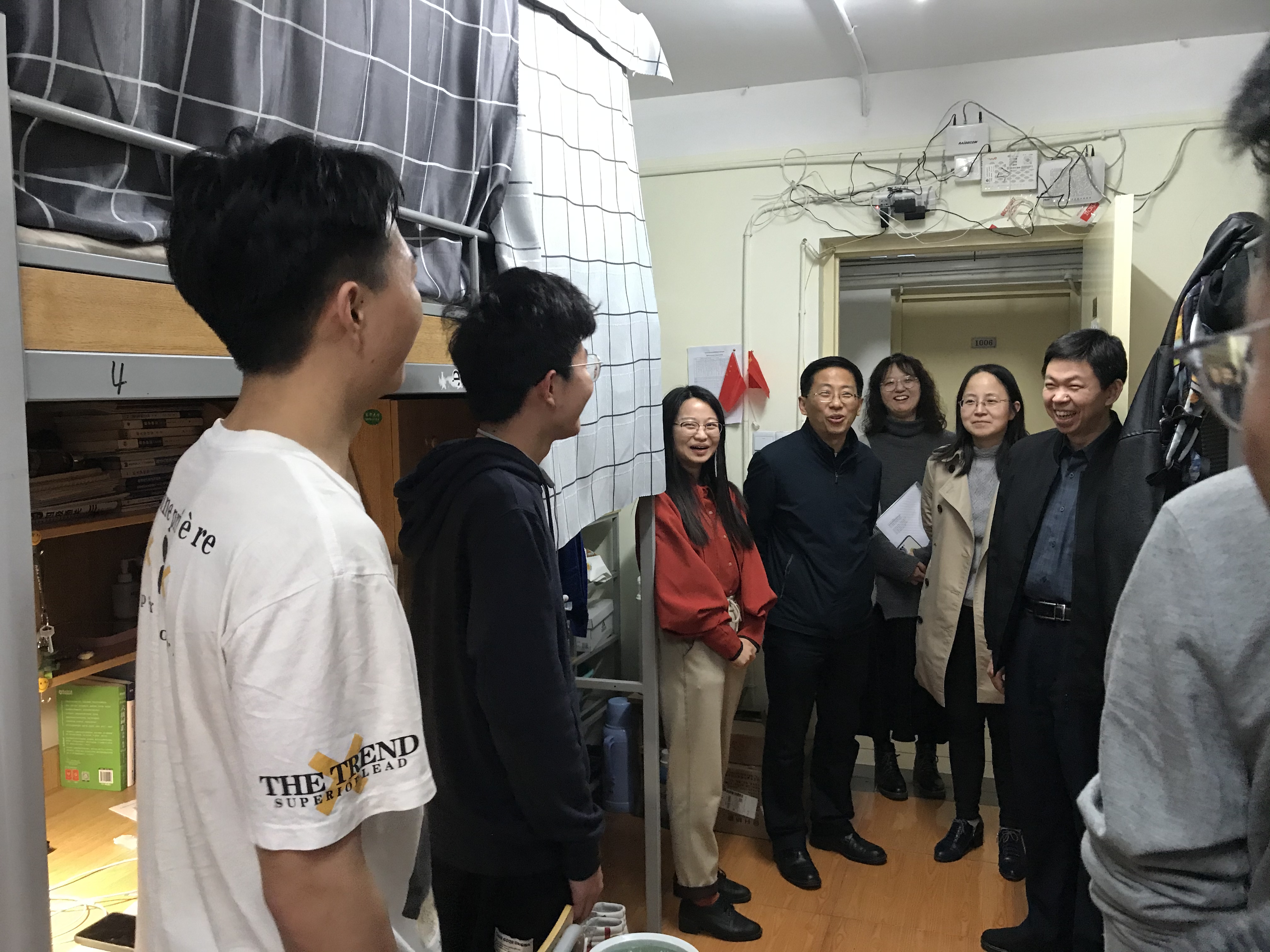 为广泛听取学生的建议和心声,加强学生宿舍学风建设和安全管理,把“我为群众办实事”落到实处,近期,MG冰球突破官网网站党委书记王新厚老师,党委副书记、院长单鸿波老师,党委副书记李宁蔚老师以及辅导员老师前往学生宿舍,针对前期收集反馈的学生反映的思想困惑和在学业、就业等过程中遇到的实际问题,给予了回应和有建设的指导和意见。