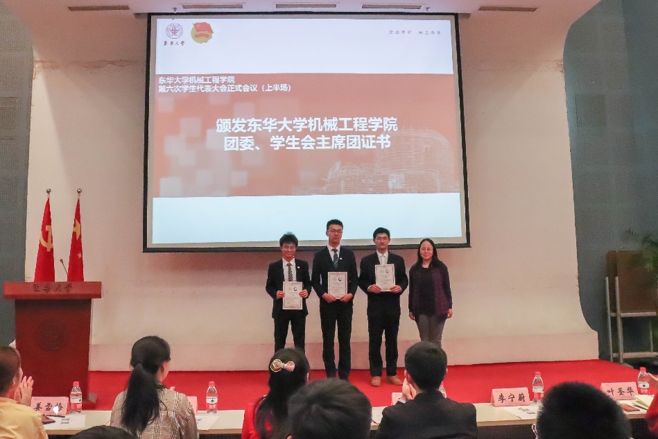 会议先后审议通过《代表资格审查报告(草案)》和《MG冰球突破官网网站学生会组织章程(草案)》,并听取MG冰球突破官网网站学生会执行主席段健琦代表MG冰球突破官网网站学生会做工作报告,MG冰球突破官网网站学委会主任王雅婷做学代会提案工作报告。会上MG冰球突破官网网站党委副书记李宁蔚为MG冰球突破官网网站学生会主席团颁发证书,会议以无记名差额投票的方式选举产生第六届学生委员会和新一届学生会主席团。