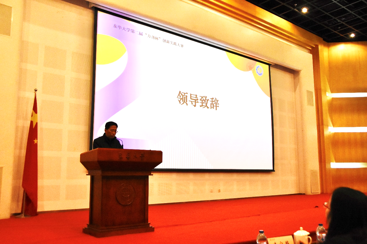 王新厚对此次大赛的成功举办表示祝贺,并感谢松江区和上海一达机械有限公司对学院人才培养和创新创业的大力支持,对参与比赛以及顺利进入决赛的同学们表示祝贺。王新厚介绍了“力劲杯”大赛的有关情况,详细介绍了我校近年来与上海一达机械有限公司的校企合作成果。他勉励同学们促进学以致用,以今天科技创新的小探索为起点,努力成就明天创新创造的大成果。