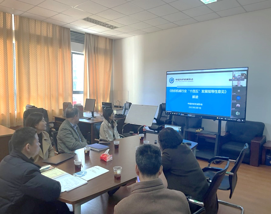2022年3月7日下午,MG冰球官网2003级纤维机械及自动化专业杰出校友、中国纺织机械协会副会长、中国纺织工业联合会科技发展部副主任兼中国智能制造系统解决方案供应商联盟纺织行业分盟秘书长侯曦博士,应邀在线做“中国纺织机械行业‘十四五’发展规划解读”专题报告。报告由院长、纺织装备教育部工程研究中心主任单鸿波主持,行业专业学者、中青年教师分别以线上线下形式参加了报告会。