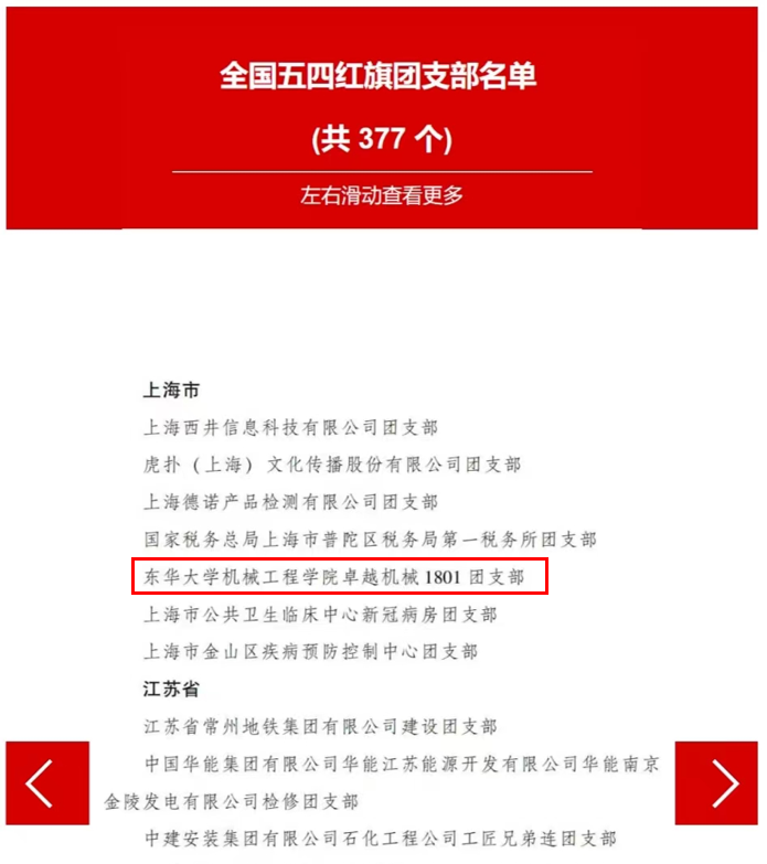 近日,从共青团中央传来喜讯,我校MG冰球突破官网网站卓越机械1801团支部荣获“全国五四红旗团支部”称号,为全国“两红两优”表彰中上海市七个“全国五四红旗团支部”中的唯一一个高校团支部。