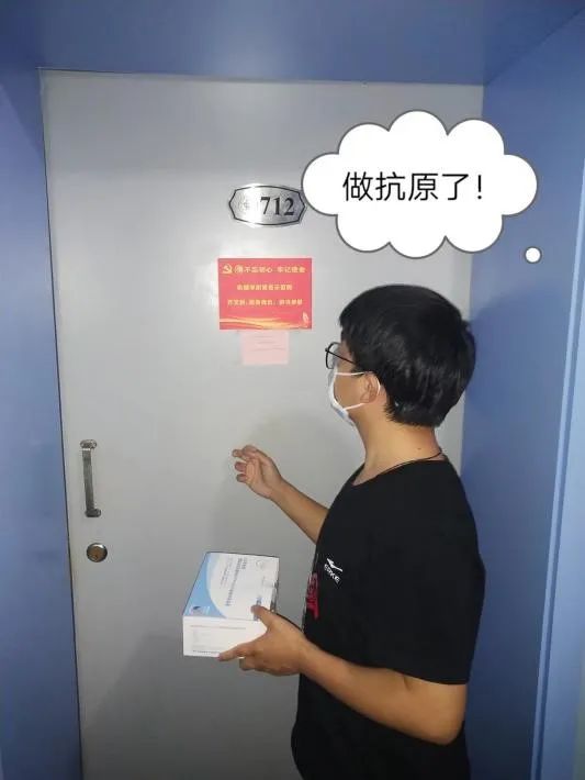 身为一名预备党员,他主动申请担任1层层长,自网格化管理体系启动以来,负责本层同学每日三餐的配送,监督每个宿舍按时进行核酸检测和抗原检测,收取结果并及时上报,还积极参与到核酸检测的扫码志愿活动中。他说在这段时间的工作中,深刻感受到防疫人员们的不易,也感受到在这场大战中大家团结一心的重要,相信我们终将取得胜利!