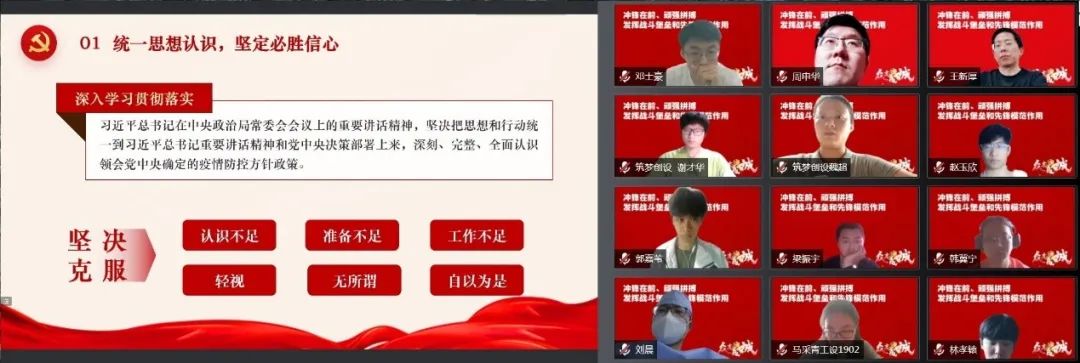 学院党委第一时间要求各教工党支部与学生党支部结对联学,坚决把思想和行动统一到习近平总书记重要讲话精神和党中央的决策部署上来,落实市委工作要求,坚定必胜信心,发动每一名党员当好宣传员、示范者、贴心人,全力打赢大上海保卫战。