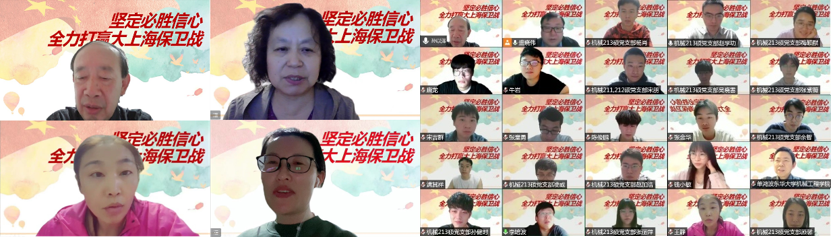 学院6个教工党支部与13个学生党支部结对联学,通过校内外视频连线等形式开展“冲锋在前、顽强拼搏,发挥战斗堡垒和先锋模范作用”主题党日活动,充分发挥教师党员对学生的关心和帮扶作用。机械电子工程教工党支部与机械211、212硕学生党支部、机械213硕学生党支部联学,号召师生党员牢记党员身份责任,积极投身疫情防控工作,做到听令而动、闻令而行,全国高校“黄大年式教师团队”负责人、上海市优秀党员师德标兵孙以泽教授发言“要在疫情防控中锤炼和检验党性”,并勉励研究生党员,“把疫情挡在门外的同时,也做到学习和科研的精神缺位,科技自立自强的脚步不停歇”。