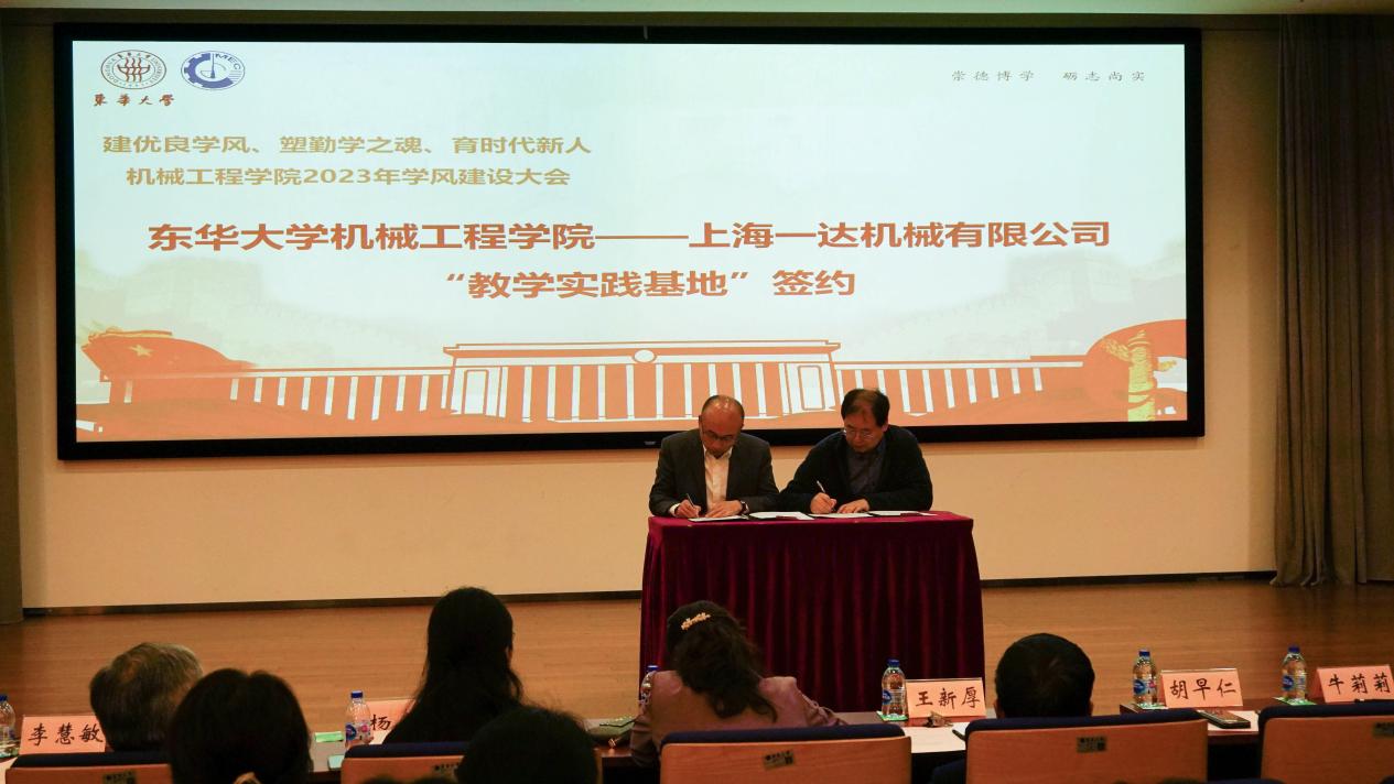 “众创空间学风涵养工作室”在会上揭牌,工作室着重弘扬科学家精神、涵养优良学风,支持学生开展各种研究创作活动。同时,MG冰球突破官网网站与上海一达机械有限公司签订“教学实践基地”合作协议,通过校企密切合作,进一步提升学院学术与就业的核心竞争力。