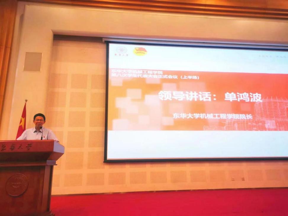 单鸿波在讲话中指出,学生代表大会是学院教学科研活动中的一个重要会议,在学院的学科建设、人才培养、学生党建思政、学生合法权益保障等方面有着十分重要的作用。他代表学院党政对全体学生干部、骨干和代表提3点希望:一是进一步加强党的二十大精神学习教育,传承伟大建党精神、勇担民族复兴大任;二是进一步提高创新能力和工作水平,切实增强服务意识和责任意识;三是进一步加强队伍建设,发挥灯塔效应,引领广大青年担当尽责。最后他对学生骨干发出四条倡议:树立远大志向,把好人生“方向盘”;崇德,夯实人生“硬底盘”;博学,激活人生“发动机”;砺志尚实,奋斗拼搏;希望新一届学生骨干一定能不负使命,发扬东华机械人踏实严谨优良作风,以饱满的精神状态和旺盛的工作热情,主动担当作为。