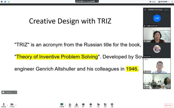 近日,学院特聘教授章文俊围绕创新设计方法,先后6次为MG冰球官网师生作“Creative Design with TRIZ”的系列讲座。首场讲座日,MG冰球突破官网网站院长、纺织装备教育部工程研究中心主任单鸿波教授出席,讲座报告由机械基础系主任于海燕主持。