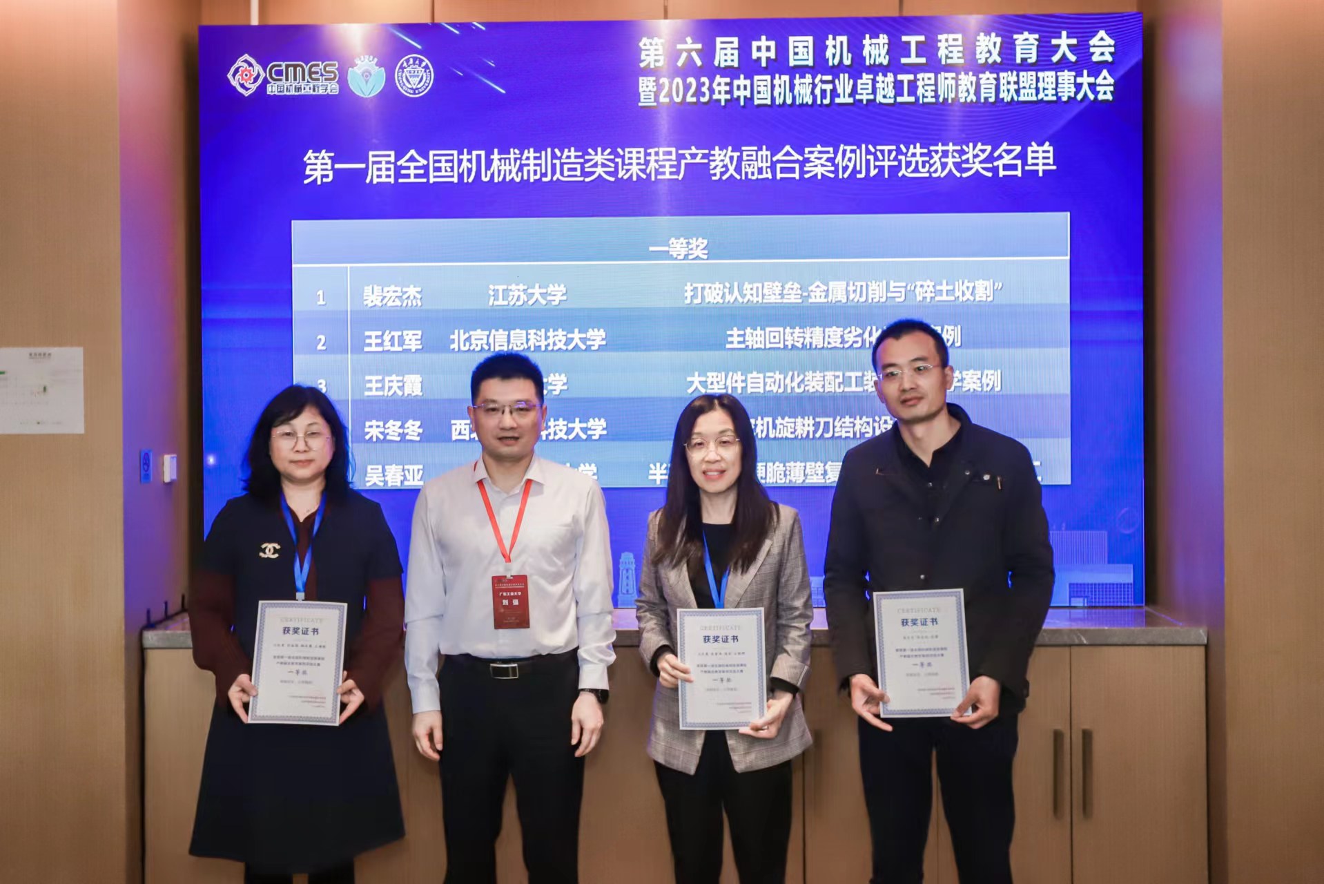 学院高度重视教师教育教学经验交流与学习,积极组织多位教师参与。在本次大会上,MG冰球官网机械制造系吴重军老师经过前期的积极准备与教学比赛评审环节,在机械制造类课程青年教师竞赛中荣获一等奖。同时,王庆霞老师和吴重军老师分别荣获第一届全国机械制造类课程产教融合案例一等奖以及二等奖,是所有参赛单位唯一获得二项教学案例奖的申报单位。