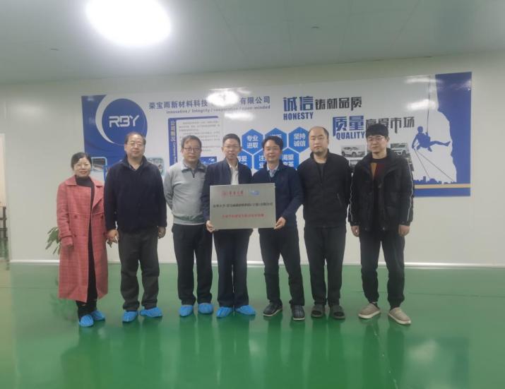 会议期间,双方举行研究生联合培养基地揭牌仪式,与会人员共同参观了荣宝雨新材料科技(宁波)有限公司工厂车间。