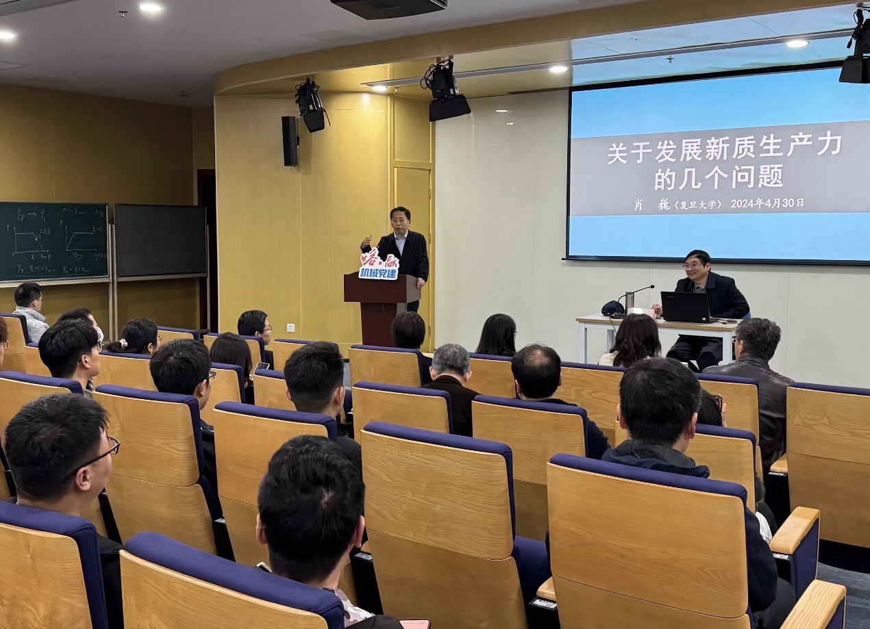4月30日,MG冰球突破官网网站邀请复旦大学马克思主义学院教授、博士生导师肖巍作《关于发展新质生产力的几个问题》主题报告,与马克思主义学院、国际合作处领导班子共同开展联组学习。会议由党委书记王新厚主持。