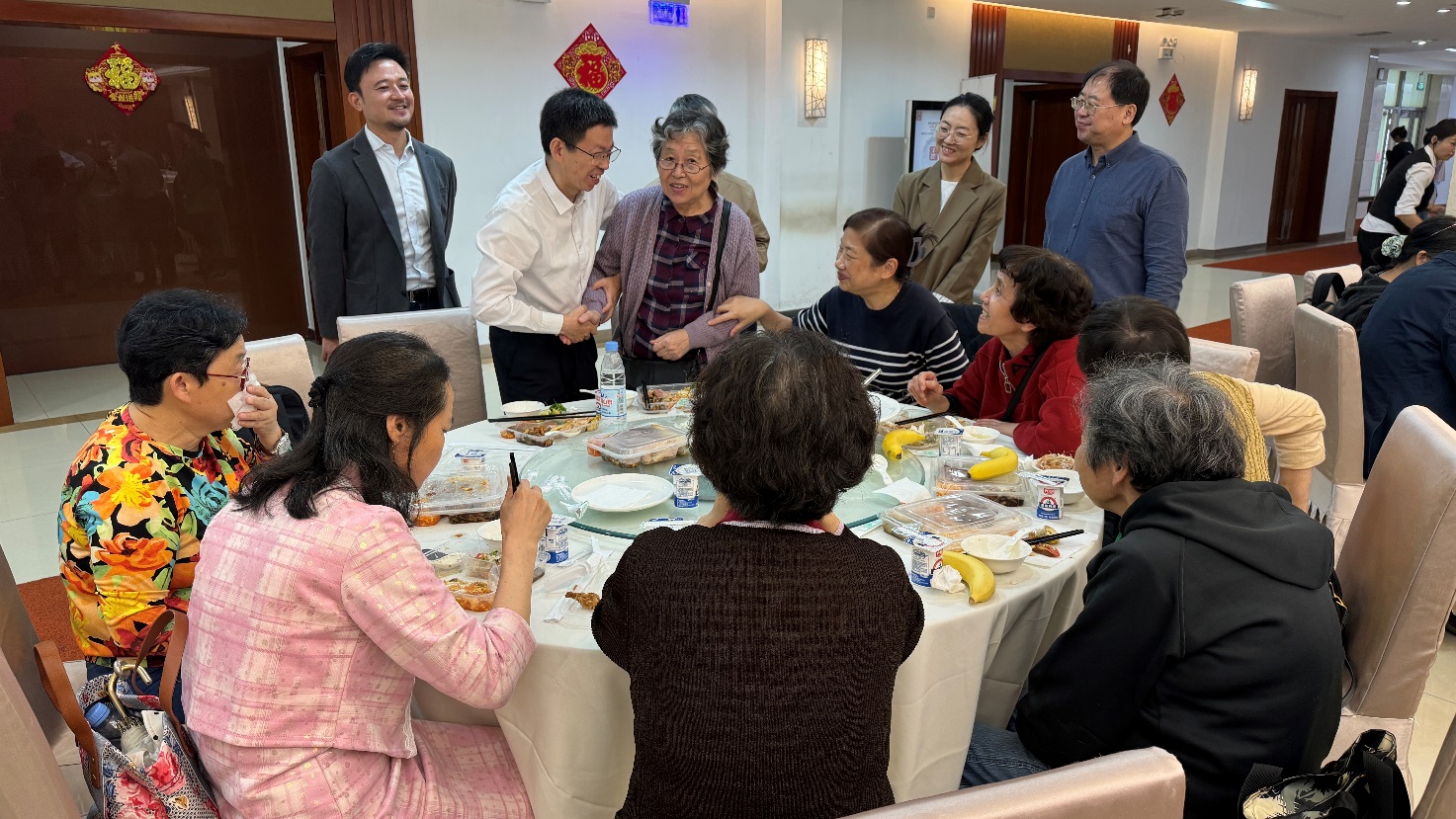 20241010日,正值重阳节之际,MG冰球官网举办了“九九重阳敬老节·退休教职工回娘家”活动。学院院长单鸿波、党委副书记杨蓉、副院长周其洪、副院长白涛、工会主席刘志辉、系主任代表逐一问候每位老同志,向他们表达全院师生的关心与问候,与退休教职工们共度重阳佳节。
