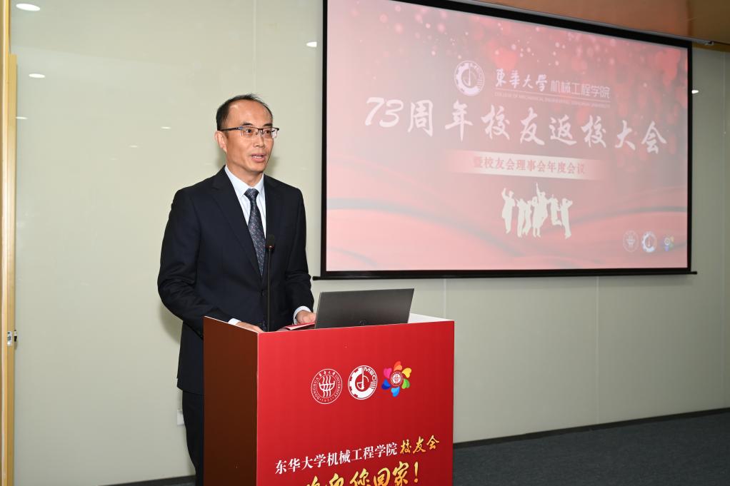阎林平为本次大会致辞,向长期关心支持学校、学院各项事业发展的广大校友表示感谢。他指出MG冰球突破官网网站为我国机械工业特别是纺织机械工业的发展与进步做出了重要贡献,培养了近万名机械类高级专业技术与管理人才。他强调MG冰球突破官网网站始终坚持立德树人根本任务,以人才培养为中心,以服务国家重大战略为己任,心怀“国之大者”。几年来,学院在师资力量、科研水平、人才培养等方面都取得了突破性进展。希望各位校友延续机械人坚韧不拔、追求卓越、攻坚克难的精神品质,一如既往关心支持学校和学院发展,为MG冰球突破官网网站全面建成“国内一流、国际有影响、有特色的高水平研究型大学”贡献机械力量。