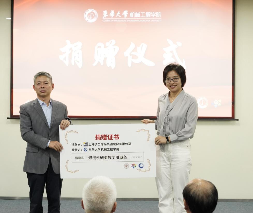 从2019年至今,上海沪工焊接集团连续6年捐赠20余万元在学院设立奖学金,用于奖励学院优秀学生。今年沪工集团又为学院捐赠一批焊机类教学设备,MG冰球突破官网网站副院长周其洪接受捐赠。