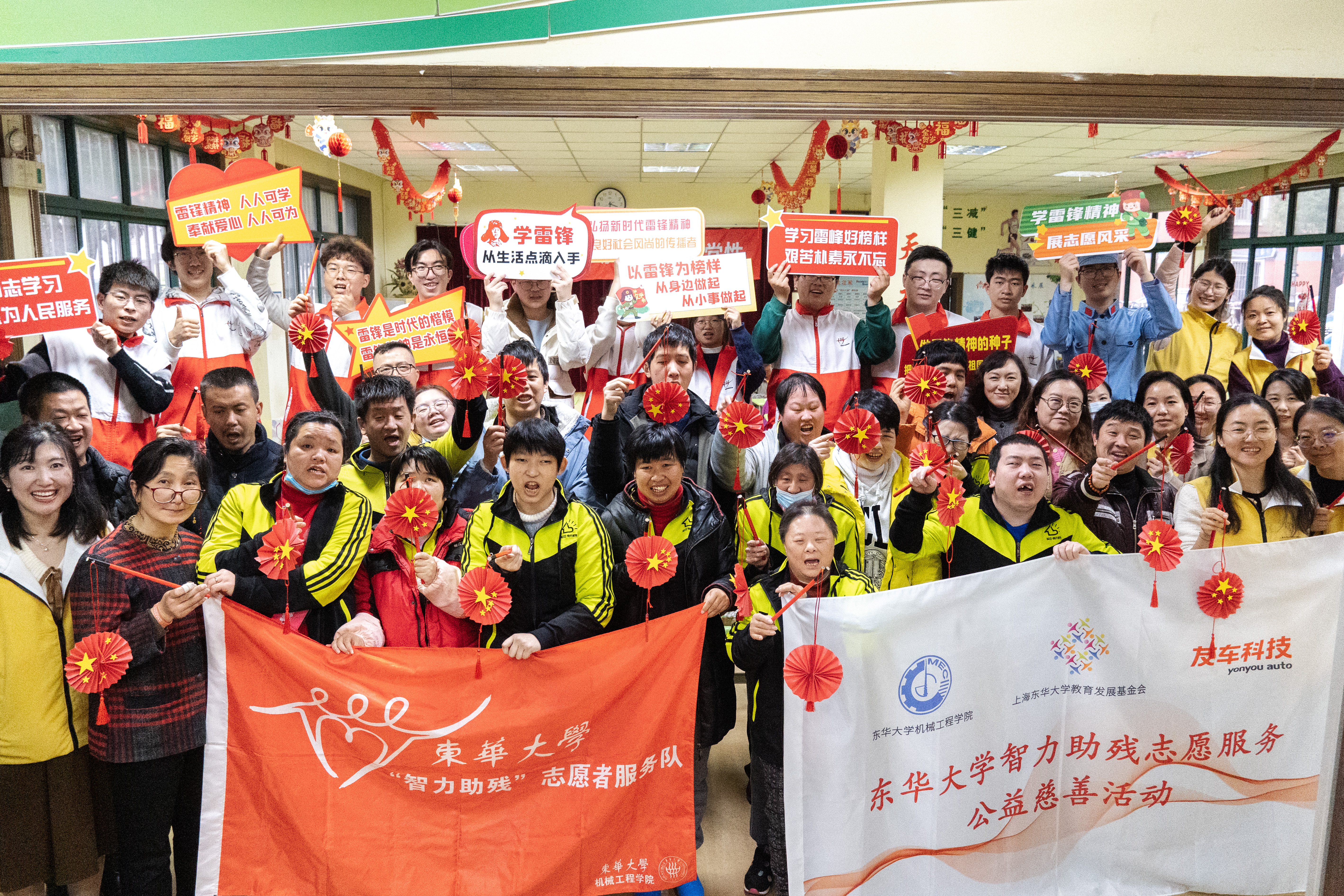为推动智力助残活动惠及更多社会残障人士,服务队致力打造党建引领、基金会协同育人、校院企联动的新型公益志愿服务体系和发展模式。在上海MG冰球突破官网网站教育发展基金会的推动下,机械工程学院联合校友企业用友汽车信息科技(上海)股份有限公司共同助力志愿服务发展,着力打造新时代文明实践志愿服务的“东华模式”。
