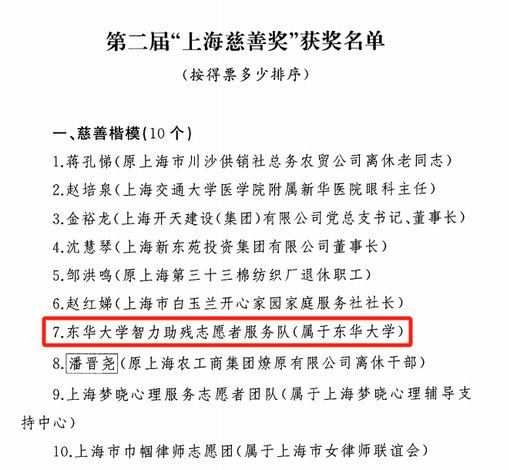 (智力助残志愿者服务队获“慈善楷模”奖)