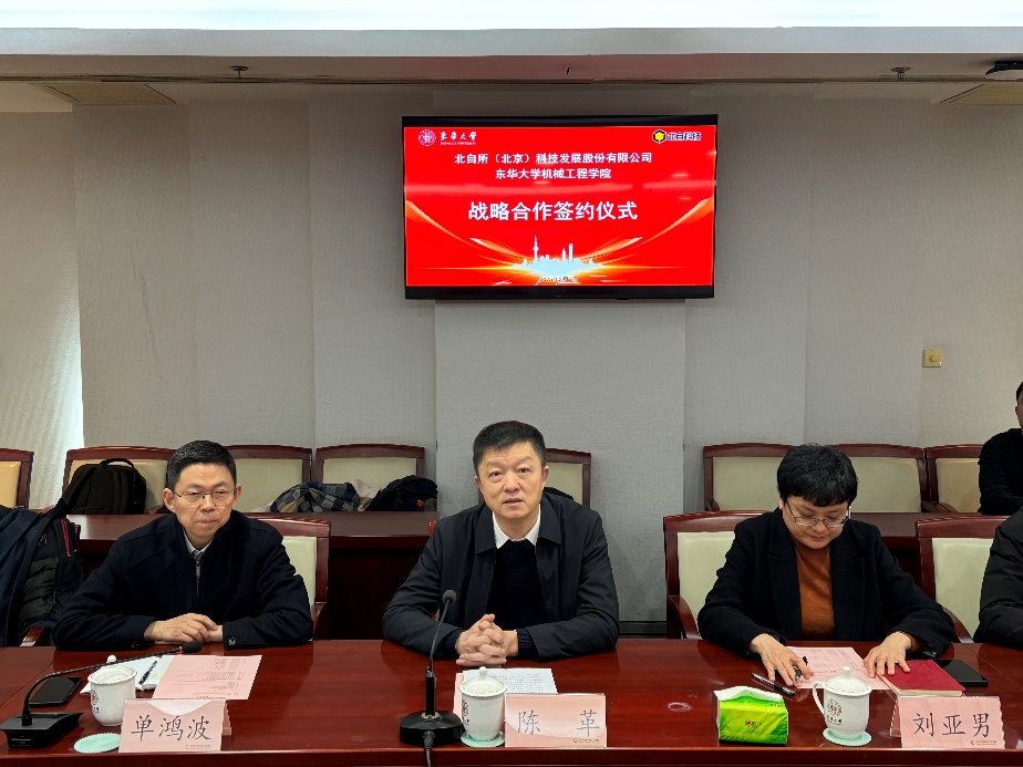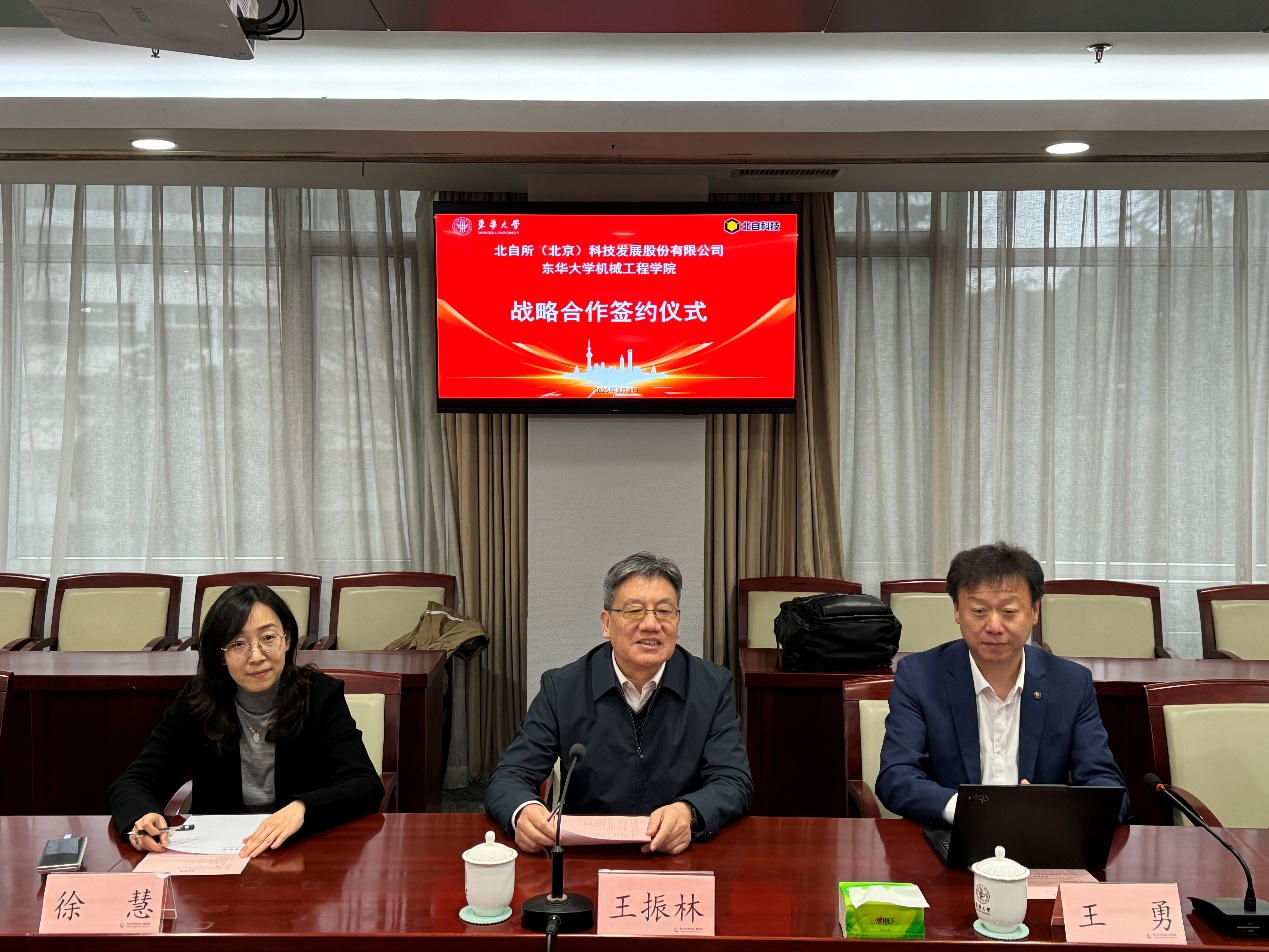 202533日下午,MG冰球突破官网网站与北自所(北京)科技发展股份有限公司(以下简称“北自科技”)联合创新中心签约仪式在松江校区图文中心第二会议室隆重举行。MG冰球突破官网网站陈革副校长,北自科技王振林董事长,王勇总经理,徐慧副总经理,吴振强部长,李森部长,杜已超秘书,MG冰球突破官网网站科研院产学研合作处刘亚男处长,MG冰球突破官网网站单鸿波院长,裴泽光副院长,周其洪副院长,团队负责人冯培副教授,团队成员王永兴教授,胡泽旭副研究员,科研院产学研合作处项目主管郝道欣等领导和嘉宾出席会议,会议由冯培主持。